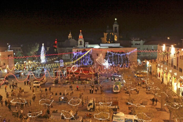 Uno de los principales símbolos de la jornada fue el gran árbol de Navidad, decorado con esferas rojas y doradas, que brilló junto a la Iglesia de la Natividad, basílica del siglo IV construida sobre la gruta que la tradición identifica como el lugar del nacimiento de Jesús. En ese templo, el patriarca latino de Jerusalén, Pierbattista Pizzaballa, presidió la tradicional Misa del Gallo, tras haber visitado previamente Gaza.