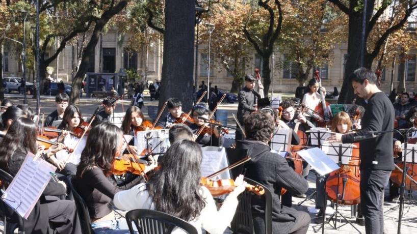 En vísperas de una nueva fecha patria, como ya es costumbre del programa provincial de Coros y Orquestas del Ministerio de Educación, se llevó a cabo un concierto al aire libre en la Plaza Urquiza de la capital.