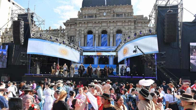 La celebración comenzó a las 14, con el “Homenaje a la Patria, desde Tucumán”, con un escenario lleno de artistas y bailarines para dar inicio al 209 aniversario del día patrio.