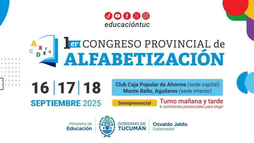 En el marco del mes de la educación y como reconocimiento a la labor de los docentes, el Gobierno de Tucumán, a través del Ministerio de Educación que conduce Susana Montaldo, con el impulso del gobernador, Osvaldo Jaldo, realizará el 1° Congreso Provincial de Alfabetización.